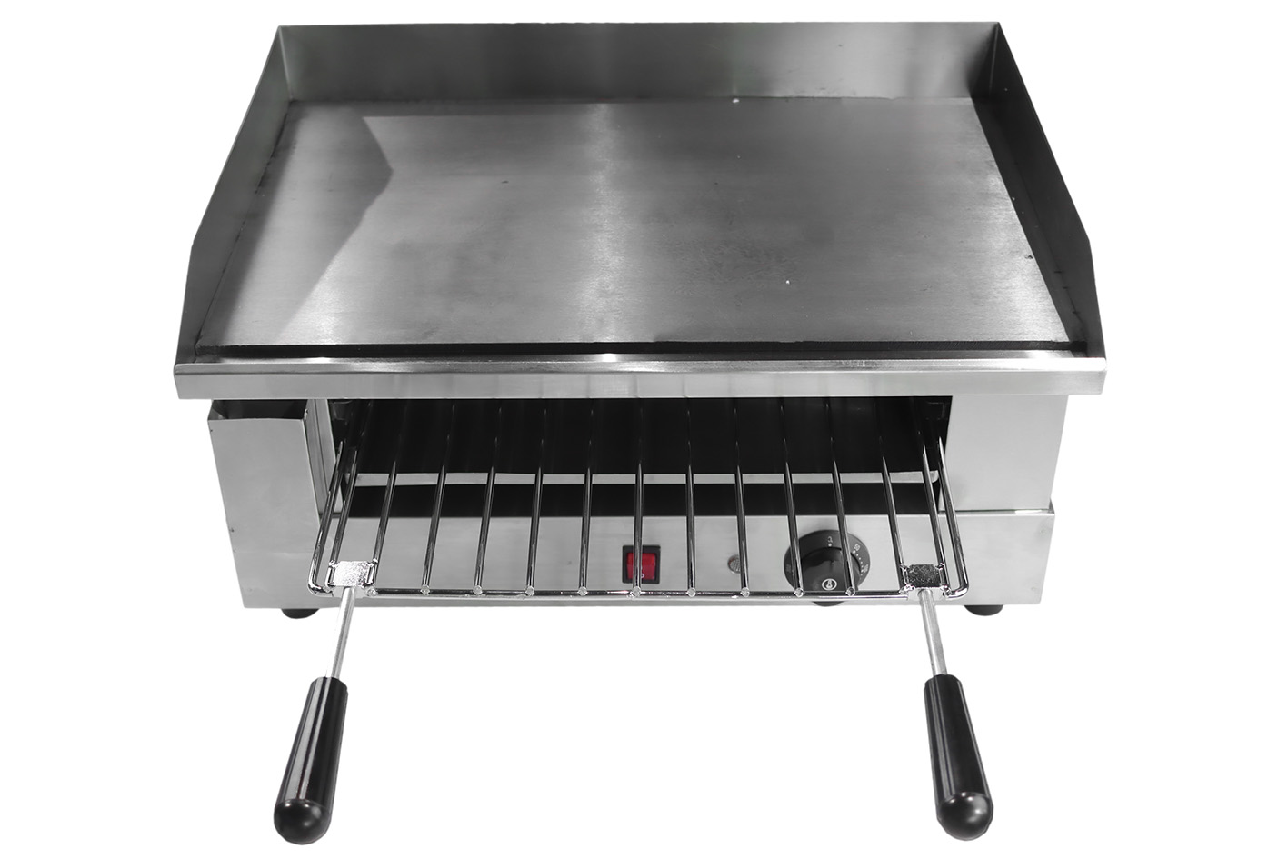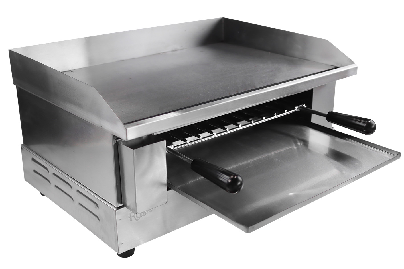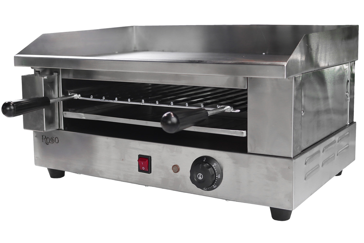 Гриль саламандра Rosso HEG-580 предназначена для жарки мясных, рыбных и овощных блюд на предприятиях общественного питания. Равномерный нагрев поверхности обеспечивает качественную обработку продуктов. Модель оснащена независимыми терморегуляторами каждой зоны нагрева, бортиками по периметру для предотвращения разбрызгивания жира и индикаторами нагревания и мощности.