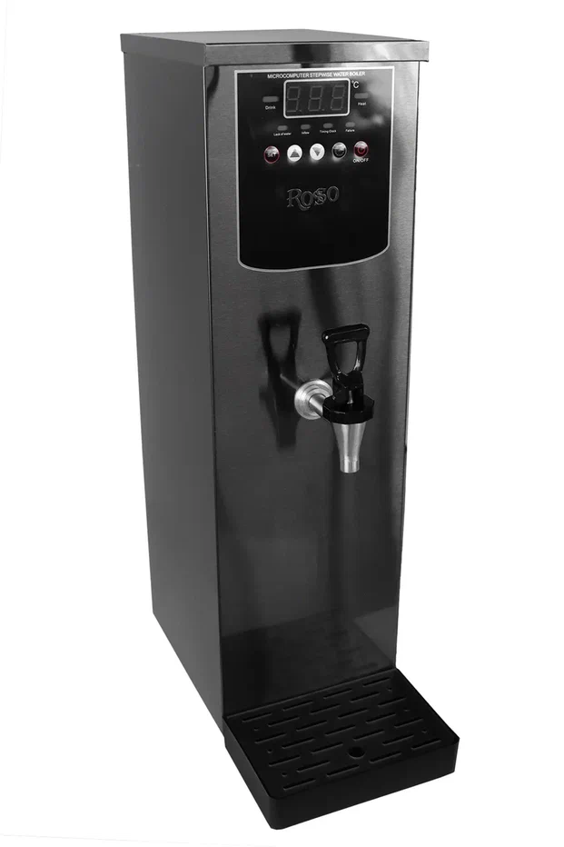 Проточный кипятильник ROSSO предназначен для быстрого нагрева воды и поддержания ее температуры в течение длительного времени. Кипятильник требует подключения не только к электросети, но и к водопроводу, и позволяет непрерывно разливать кипяток, не заботясь об уровне воды в резервуаре. Настольный электрокипятильник оптимален для линий раздачи ресторанов, кафе, столовых, закусочных. Он также идеально подойдет для приготовления горячих напитков в барах и оснащения детских садиков, школ, офисов и больниц. Кипятильник ROSSO работает по принципу ступенчатого нагрева воды. Электроды в каждой ступени посылают сигнал на микрокомпьютер, который, обрабатывая сигналы, активирует нагревательный элемент и электромагнитный клапан, тем самым регулируя температуру и объем подачи воды. Таким образом, вода, нагретая на одном уровне, закипает. Затем нагревается следующий уровень, в результате формируется ступенчатый цикл нагрева. Такая технология позволяет избавиться от повторного нагрева воды и экономит её потребление