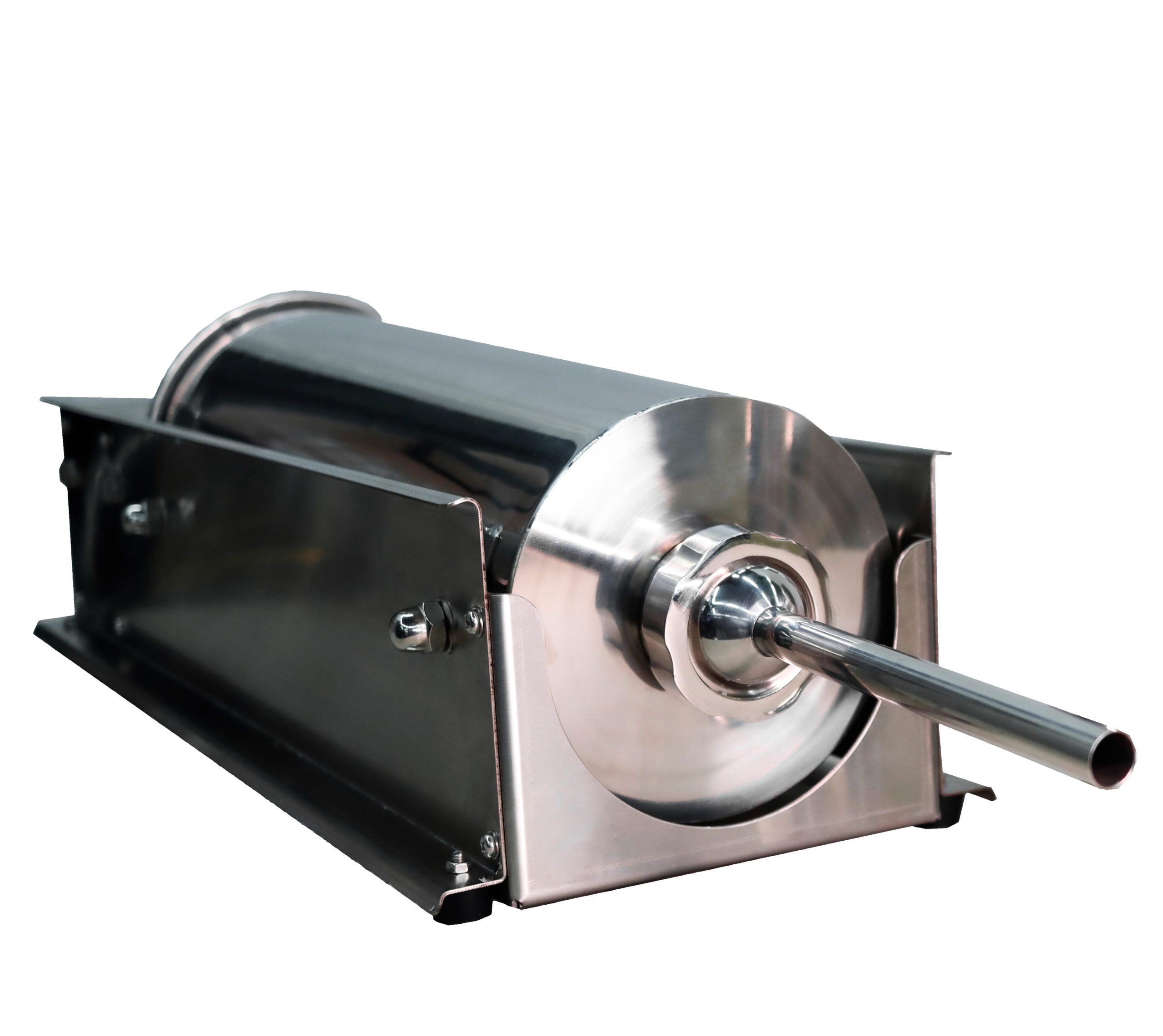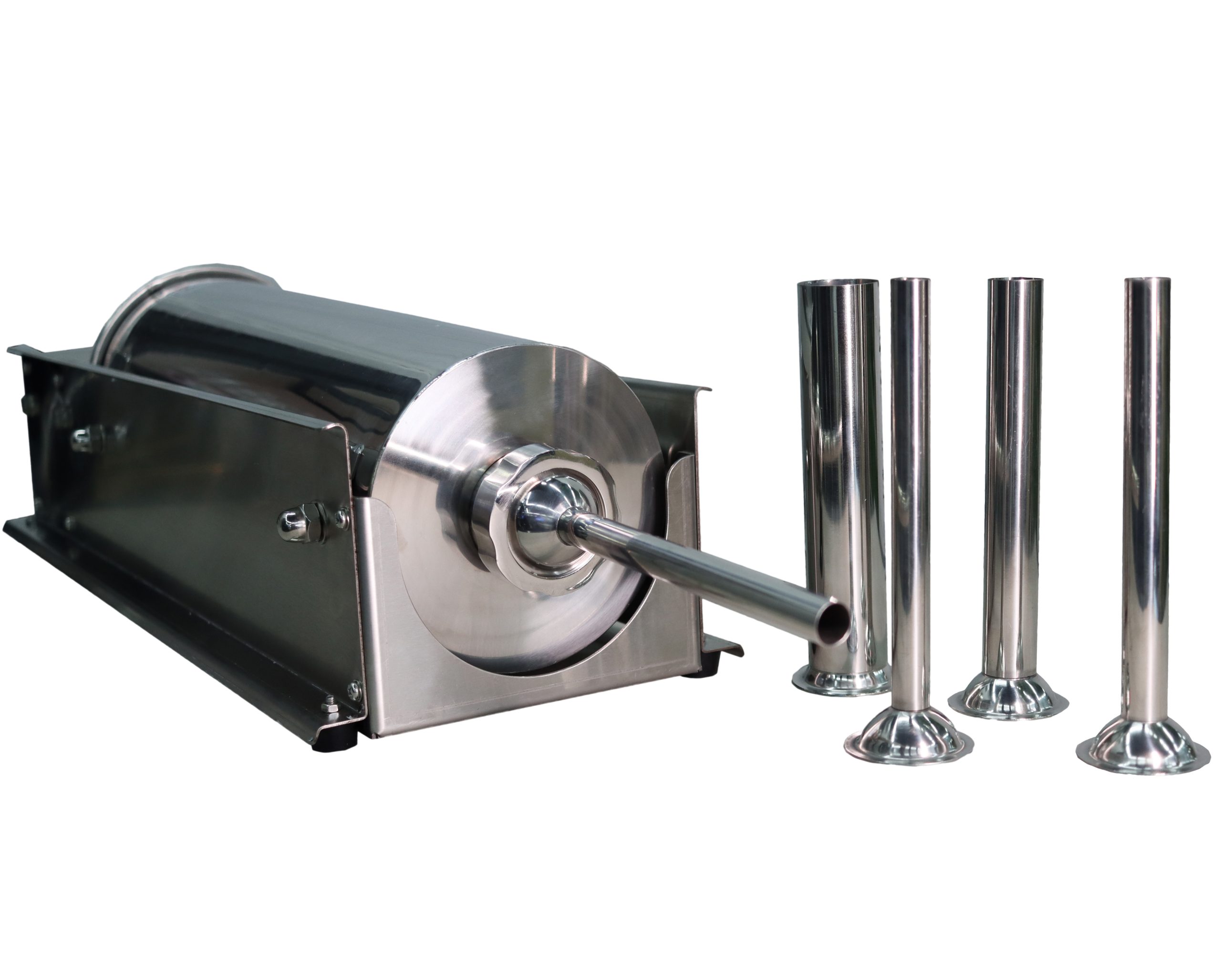 Горизонтальный механический шприц TG-5L предназначен для изготовления колбас, сосисок, сарделек, паштетов и другой продукции в оболочке из натуральных и искусственных материалов. Набор включает 4 насадки (наполнители) с диаметром 16,19,25 и 38мм, длиной 180 мм.